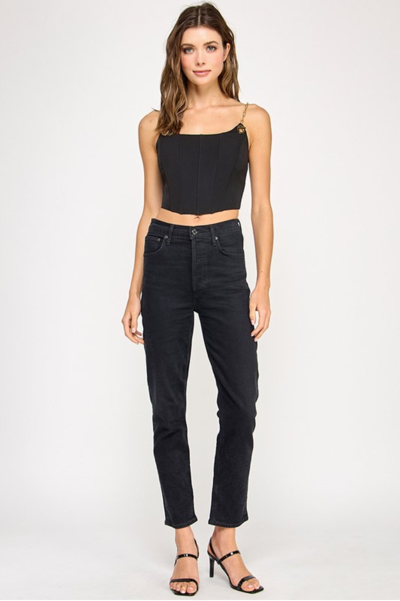 ¡Potencia tu estilo con este hermoso corset negro! Diseñado para realzar tus curvas y ofrecer una figura esbelta. Ideal para cualquier ocasión, desde una noche en la ciudad hasta una celebración íntima. Disfruta de la comodidad y la confianza con este impresionante corset negro.