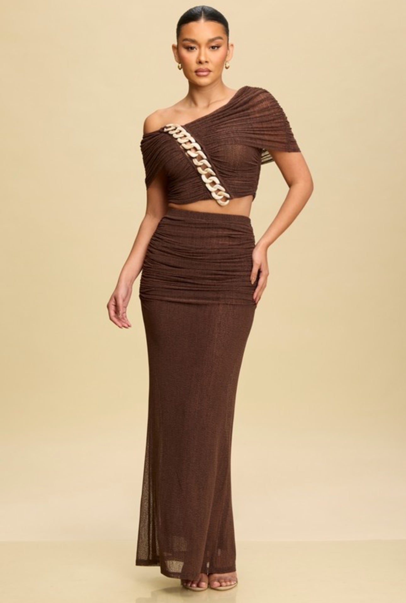 El conjunto de ropa de mujer de mármol de chocolate es una opción elegante y moderna para cualquier ocasión. Con su diseño de mármol único, este conjunto se destacará entre la multitud. Hecho con materiales de alta calidad, este conjunto seguramente durará temporada tras temporada. ¡Haz una declaración de moda con este conjunto de ropa exclusivo!